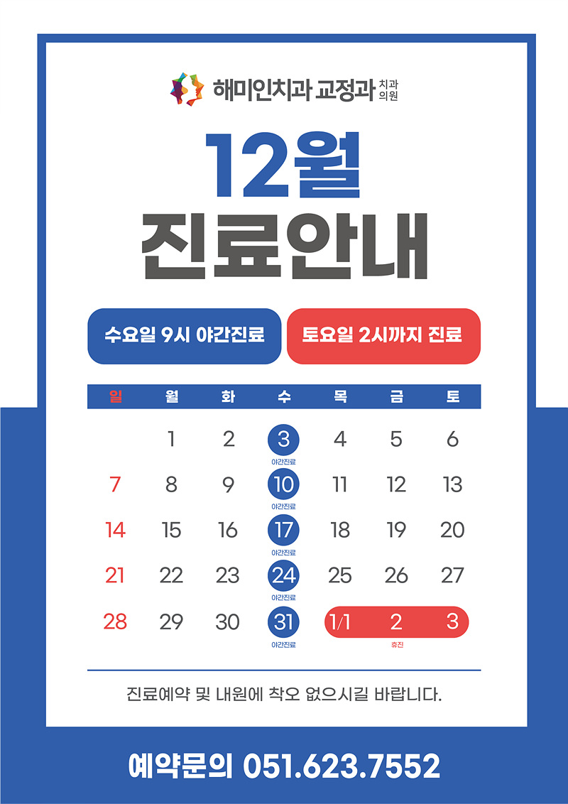 • 평 일10:00~19:00 수 요 일 10:00~20:00(야간진료)